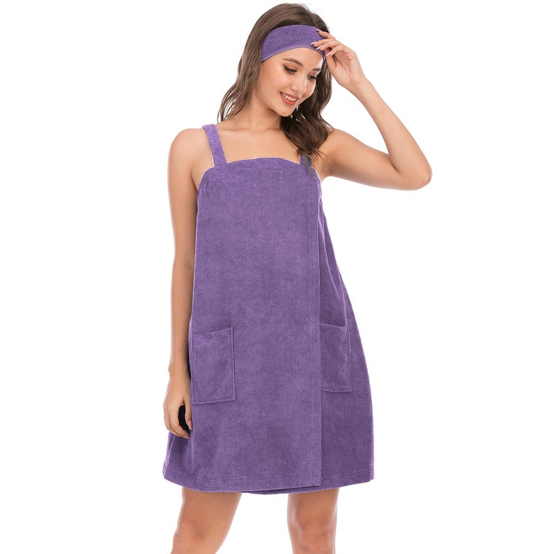 Veseacky Terry Cloth Spa Wrap for Ladies Gym Shower Towel with Adjustable Closure & Elastic (M,Purple)