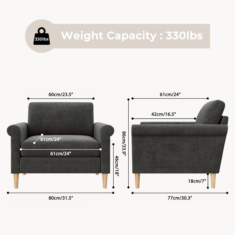 • Sturdy and Durable: Built to last, the Vesgantti armchair features a solid wood frame, reinforced construction, premium polyester fiber, and independently wrapped coils. Designed for both comfort and durability, it supports up to 330 lbs, ensuring reliable stability.
