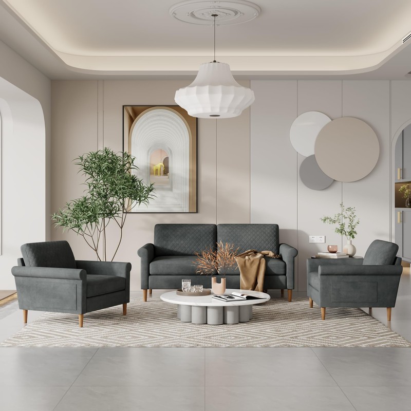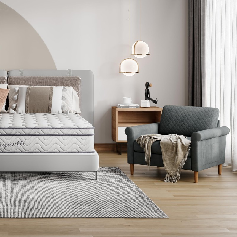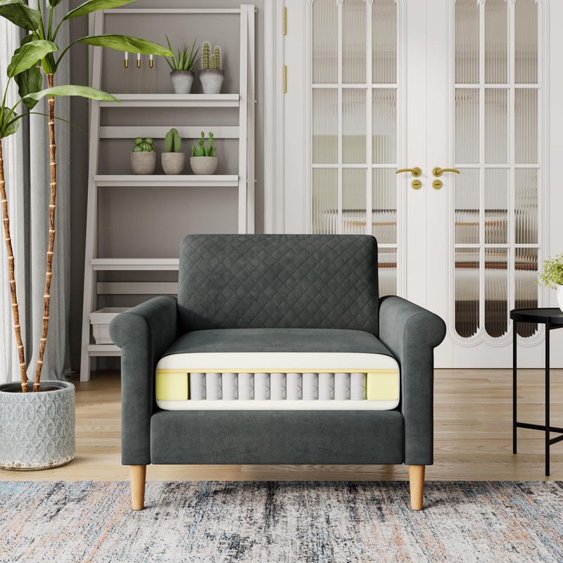 Vesgantti Gray Compact Single Sofa - Foam Pocket Spring Hybrid Upholstered Co...