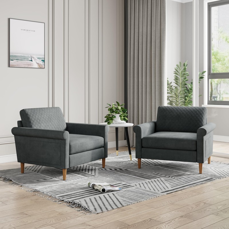 This elegant accent chair is an ideal addition to your living room, bedroom, or home office. Upholstered in plush velvet fabric and featuring foam-padded cushions, it offers outstanding comfort for relaxing or working. Built with a durable wooden frame, it combines reliability with timeless style. The chair's ergonomic design and modern aesthetic seamlessly blend with a range of interior decor styles. Plus, assembly is hassle-free and tool-free, making it a convenient choice for any space.