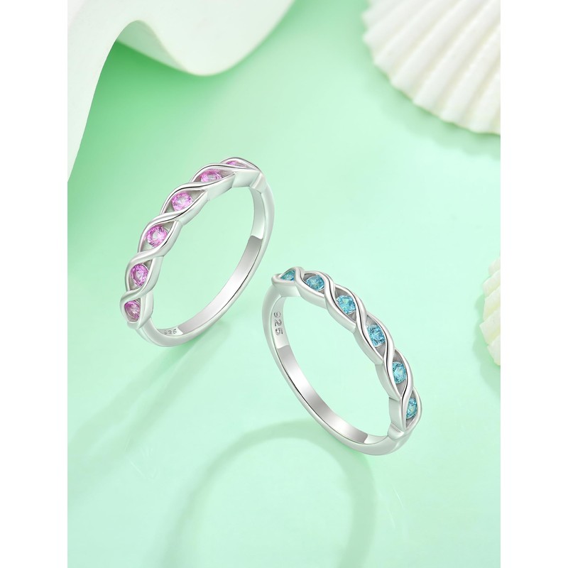 - Rings Specifications-Women Twisted Stackable Rings,set with 6pcs round-brilliant-cut created pink tourmaline