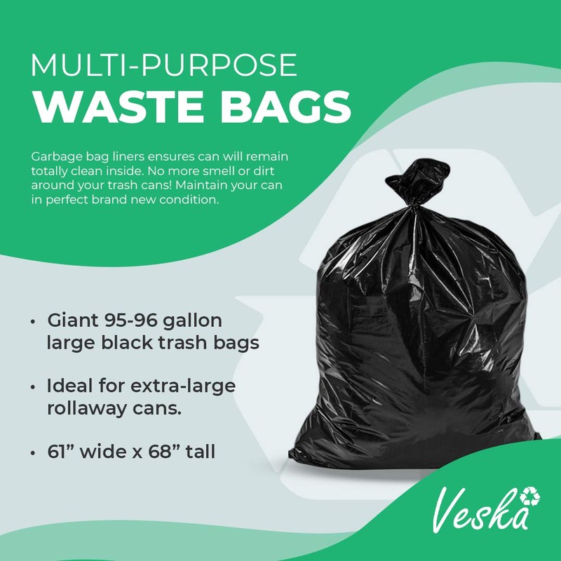 Veska 95-96 Gallon Trash Bags Heavy Duty (Huge 50 Bags W/Ties) 95-96 Gallon Trash Bags Large Black Heavy Duty Can Liners, Large 90-100 Gallon Garbage Can Liners