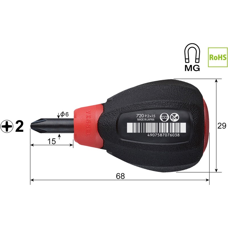 ベッセル(VESSEL) クッションドライバー 〈スタビータイプ〉 +2×15 720