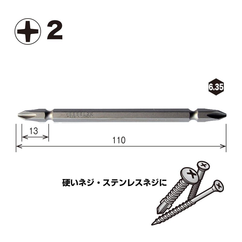 Vessel AX142110 Double Ended Bit, High Hardness +2 x 110, 2 Pieces