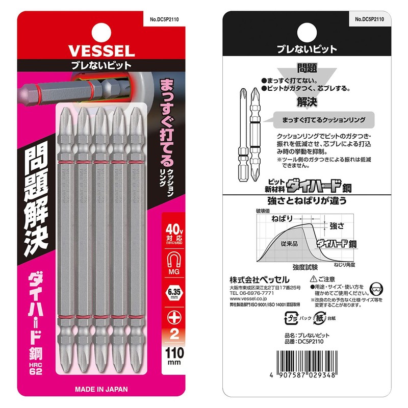 Vessel DC5P2110 40 V Compatible Problem Solving Bit No Shake Double Ended Bit...