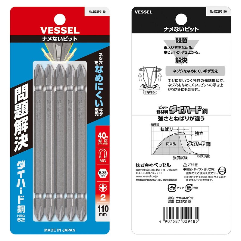 Vessel DZ5P2110 40 V Compatible Problem Solving Bit No Rough Double-ended Bits +2 x 110 5 Piece Set