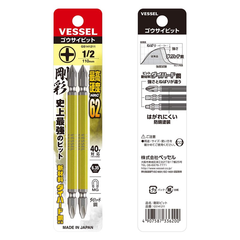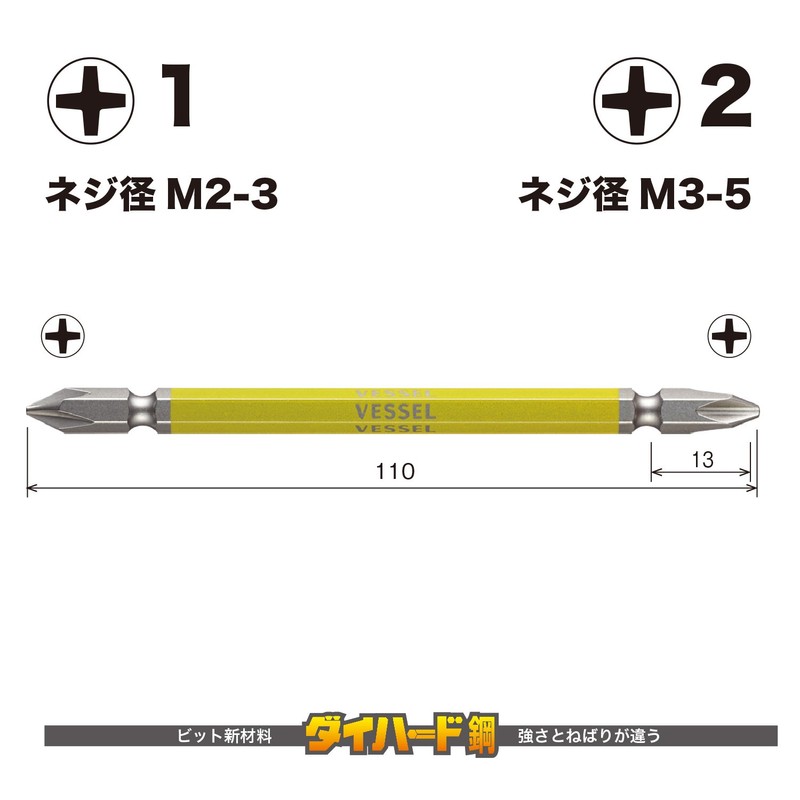 Vessel GS141211 40 V Compatible, Double-Ended Combination Rigid Bit +1/+2 x 110, 2 Pieces