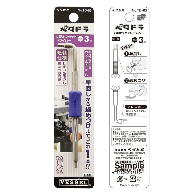 ベッセル(VESSEL) オフセットドライバー L型 対辺3 TD-63