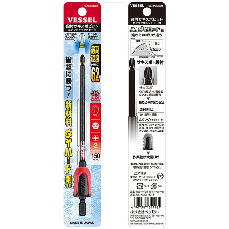 Vessel NMCS16215 40 V Compatible Sakisbo Step Bit +2 x 150 1 Piece with Screw Mag Catcher