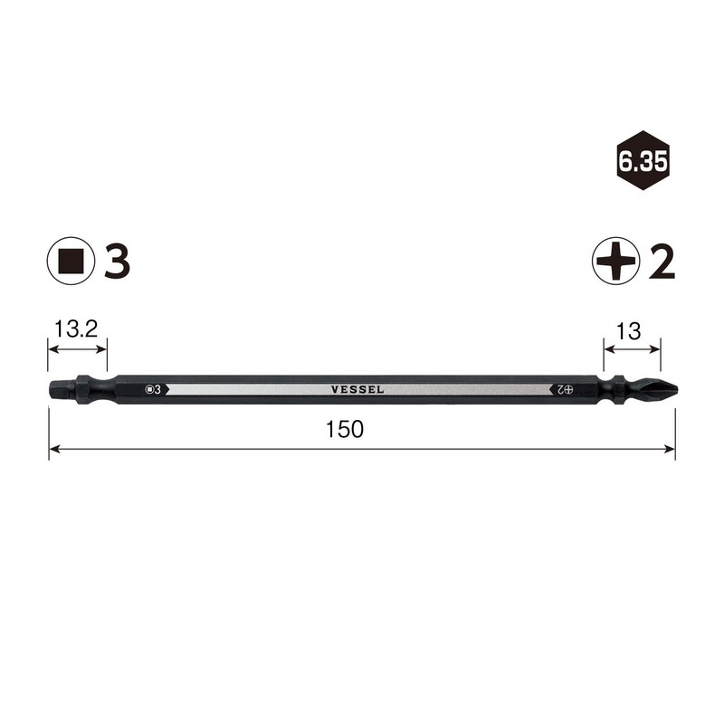 Vessel PQ142315S Double Ended Combi Bit Plus/ Square +2 / SQ3 x 150