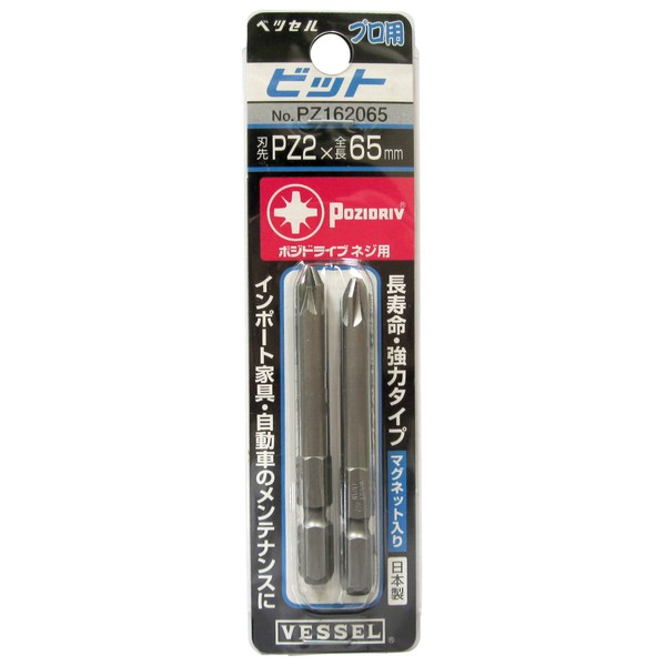 Vessel PZ162065 Pozidriv Bit Plus 2 x 65