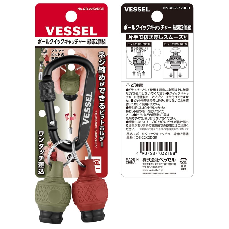 Vessel QB-22K2DGR Ball Grip Quick Catcher, 2 Piece Set (Dull Green, Dull Red) Bit Holder