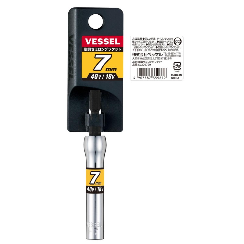 Vessel SL200790 Semi-Long Socket, Opposite Side 0.3 x 3.5 inches (7 x 90 mm), Hexagonal