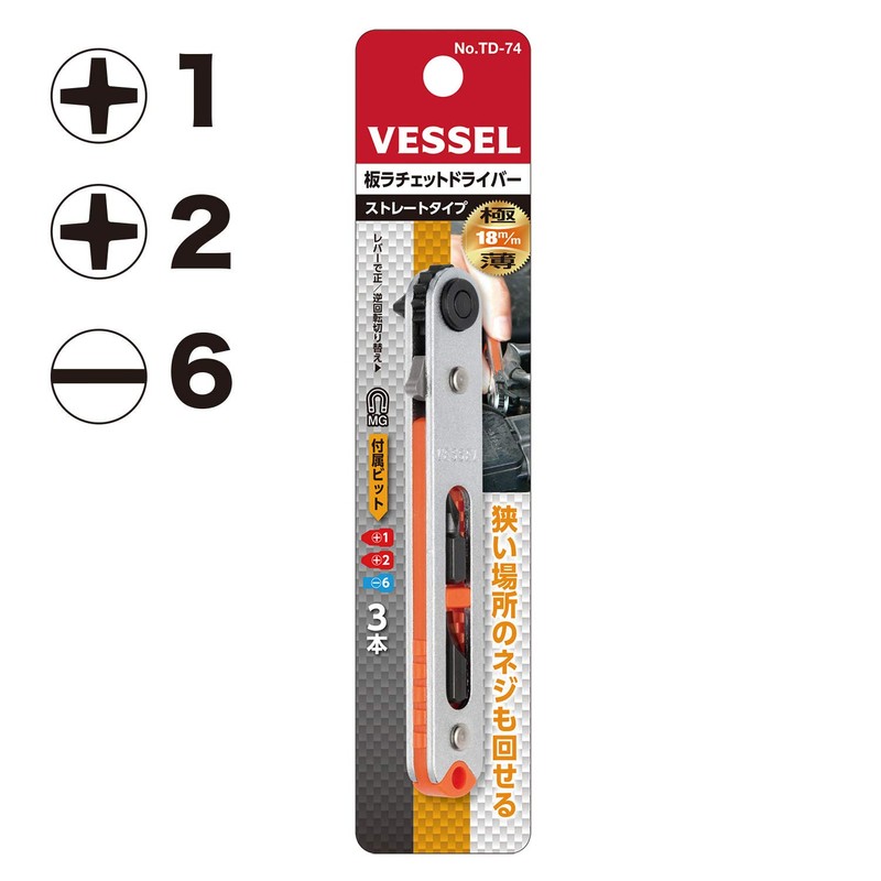 ベッセル(VESSEL) 極薄 板ラチェットドライバー ストレートタイプ TD-74
