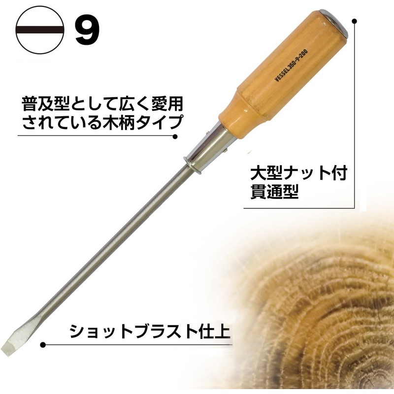VESSEL Wooden Handle Through Driver -9 x 200 350