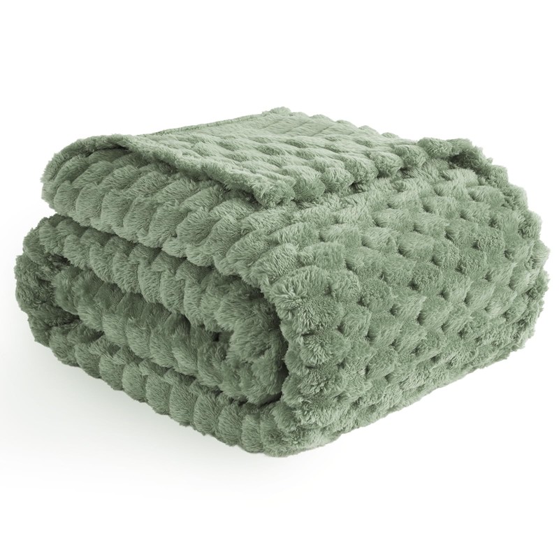 Vessia Flannel Fleece Throw Blanket, 3D Jacquard Sage Green Fuzzy and Warm Blanket for Couch, Sofa, Bed, 300GSM Super Soft Touch Cozy Home Decor for All Seasons (50x70 inches)