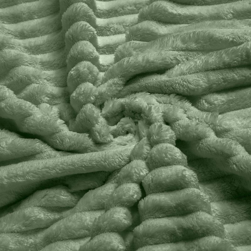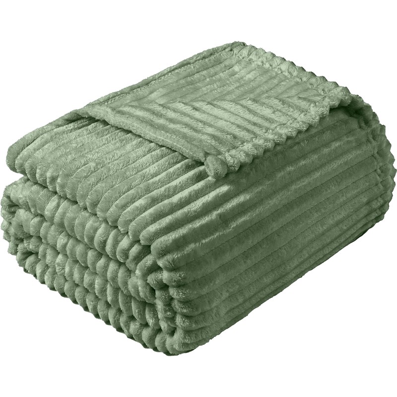 Vessia Flannel Fleece Throw Blanket for Couch,Sofa,Bed, 300GSM Microfiber Sage Green Striped Chair Blanket for Adults and Kids, Super Soft Warm Cozy Lightweight Ribbed Throw for All-Season
