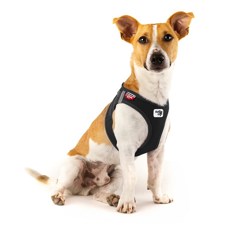 - Box contents: Curli vest harness softshell harness (light step-in harness, individually adjustable, wind- and water-repellent softshell) – includes DogDinder ID – size: L – colour: black