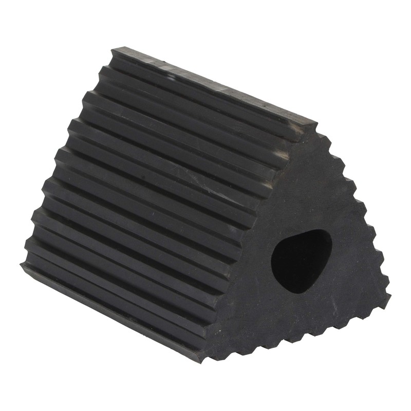This Vestil RMC-4 rubber wheel chock can be used for preventing accidental movement of trucks, trailers, and other wheeled vehicles. The chock is made of extruded rubber for resistance to slipping, tearing, ozone, abrasion, and adverse weather conditions. It has a ribbed surface to prevent slipping on the tire. The chock measures 4-1/4 x 6-1/2 x 4-3/4 inches (L x W x H). (L is length, the horizontal distance from front to back; W is width, the horizontal distance from left to right; H is height, the vertical distance from bottom to top.) This rubber wheel chock is suitable for preventing accidental movement of trucks, trailers, and other wheeled vehicles where exposure to changing weather conditions is expected.
