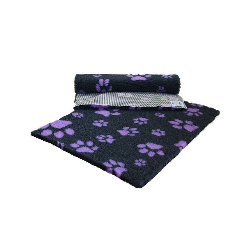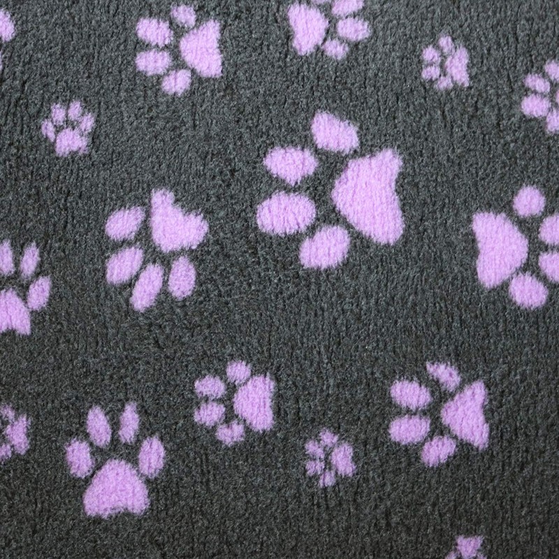 Vet Fleece Bedding | Vet Bed Original Non-Slip | for Puppys and Dogs | Manufactured in our British Mill| 30" x 24" (0.75m x 0.60m) Charcoal with Lilac Multi-Paws | Quick Drying | Washable | Dog Bed
