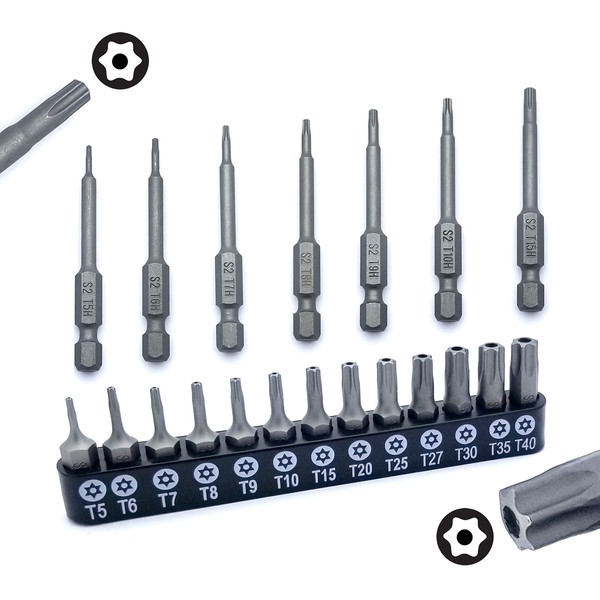 VETCO 20-Piece Security Torx Bit Set, Tamper Resistant Star Bits Set S2 Steel, 1" and 2.25" Long T5 - T15