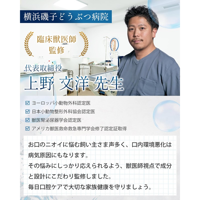 - Professional Veterinarian Prescription for Polygonal Bad Odor and Periodontal Disease: This product was supervised by a veterinarian with a rich clinical experience and carefully selected 8 ingredients based on scientific bases. Not only does it work with breast odor, plaque, gumitis, periodontal disease, but it also works with intestinal flora and immune function. This "comprehensive care type supplement" is designed to support your health from the inside of the body by approaching the root cause of odor