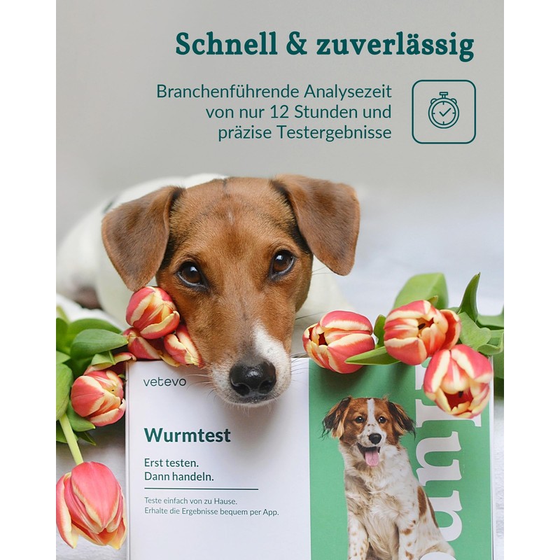 - Quick diagnosis: with the industry-leading analysis time of 12h, the vetevo worm test for dogs delivers precise results to avoid unnecessary worm treatments or find the right worm cure