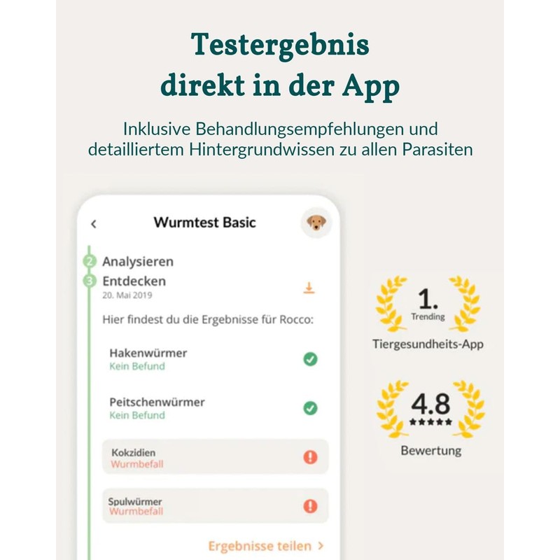 - Direct results: Stay up to date with live updates from the lab. The easy-to-understand test results are available directly on the mobile phone, supplemented by valuable knowledge about the identified parasites