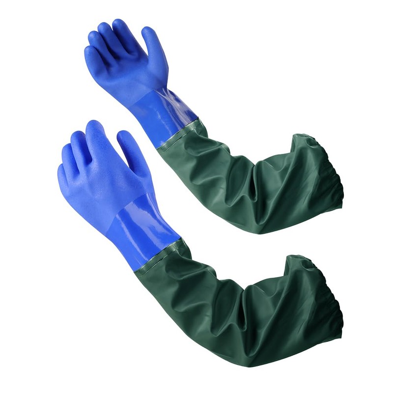 - Flexible: the non-slip sand grain structure of these pond gloves long covers the entire palm and allows effortless gripping of damp or oily objects. These long rubber gloves are flexible and adapt to most hand sizes.