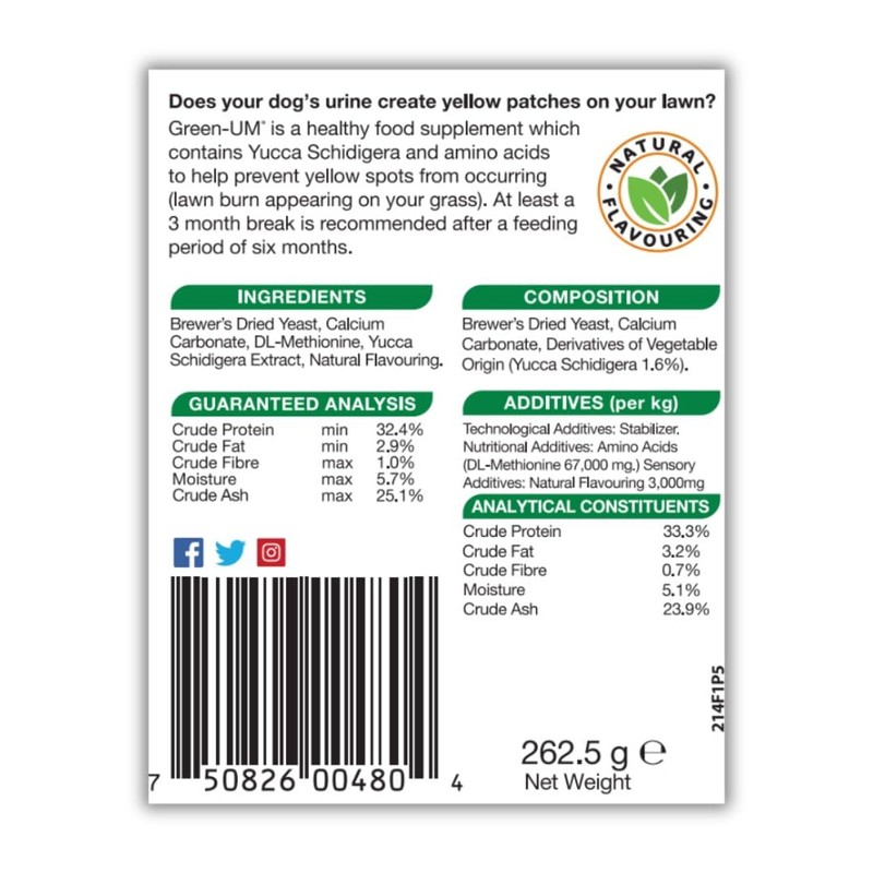 - NATURAL PRODUCT: Green-UM tablets are a natural product which can be given to your dog on a regular basis and contain no chemicals, colour additives and preservatives and does not alter urinary pH or has any effect on kidney function