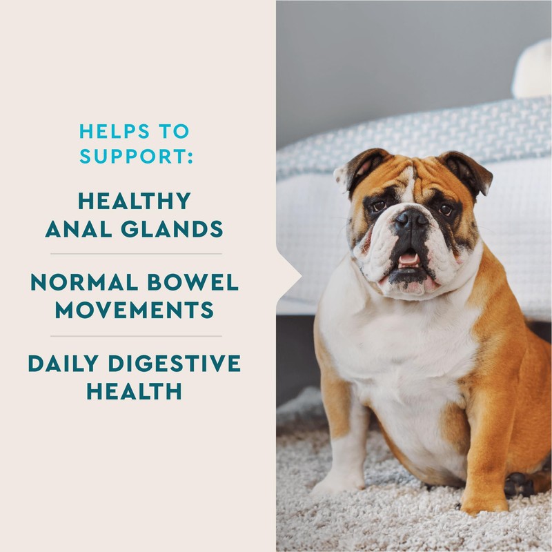 - Anal Gland & Digestive Support: Our Anal Gland soft chews are specially formulated to support normal bowel movements and the natural emptying of your dog's anal glands. Plus, every soft chew supports their digestion and immune health to help them feel their best from the inside and out