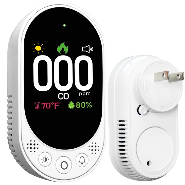- Easy to use: Equipped with advanced temperature, humidity and carbon monoxide sensors, the product does not require any operation. Just plug in the power supply to use it normally. The button can switch the temperature and humidity, screen brightness, switch buzzer and other functions.