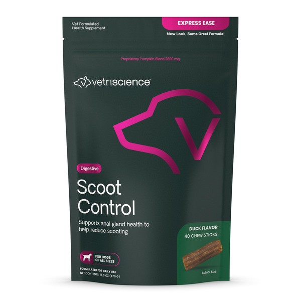 Express ease from vetriscience is a natural and gentle way to manage anal gland health in dogs of all sizes. Our formula includes 3 natural sources of fiber that help to maintain stool consistency and volume, encourage regular and proper bowel function and supports a clean healthy and less odorous digestive tract. Unlike canned pumpkin or pumpkin treats, express ease provides immune, digestive and colonic support in an overall effort to support dogs that often have to scoot to find colon relief. Save the carpet, stop the scoot.