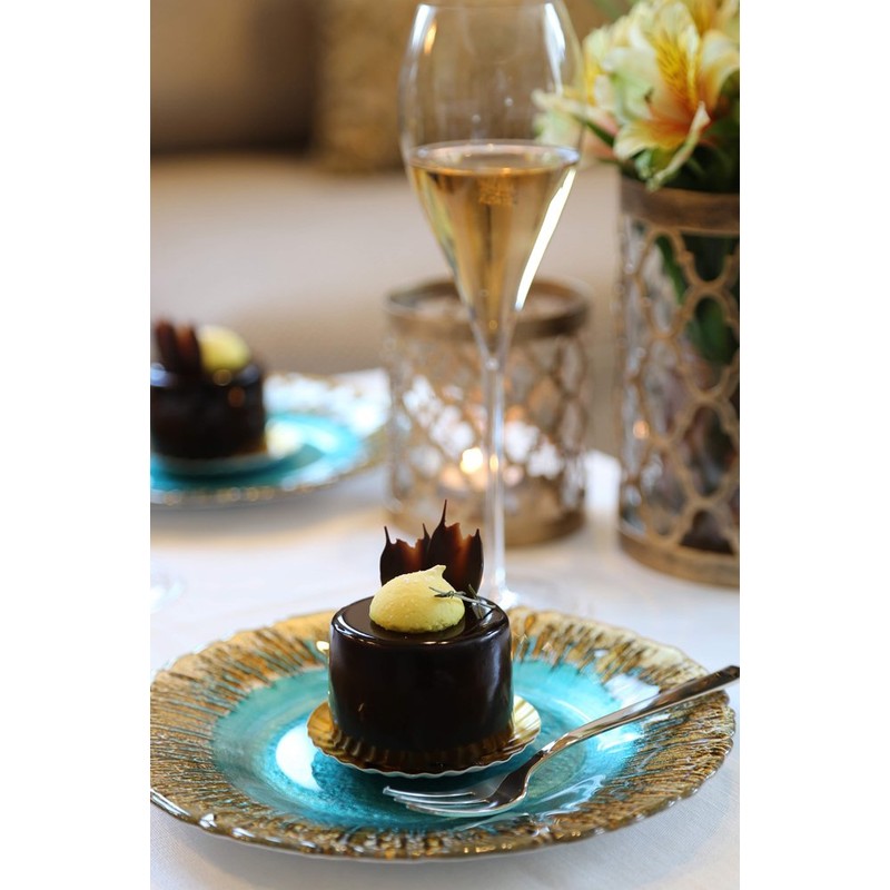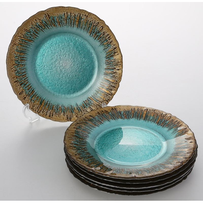 Vetro Felice 349122P Medium Plate Western Tableware Plate Turquoise x Gold 8.5 inches (21.5 cm) Happy Glass Flash