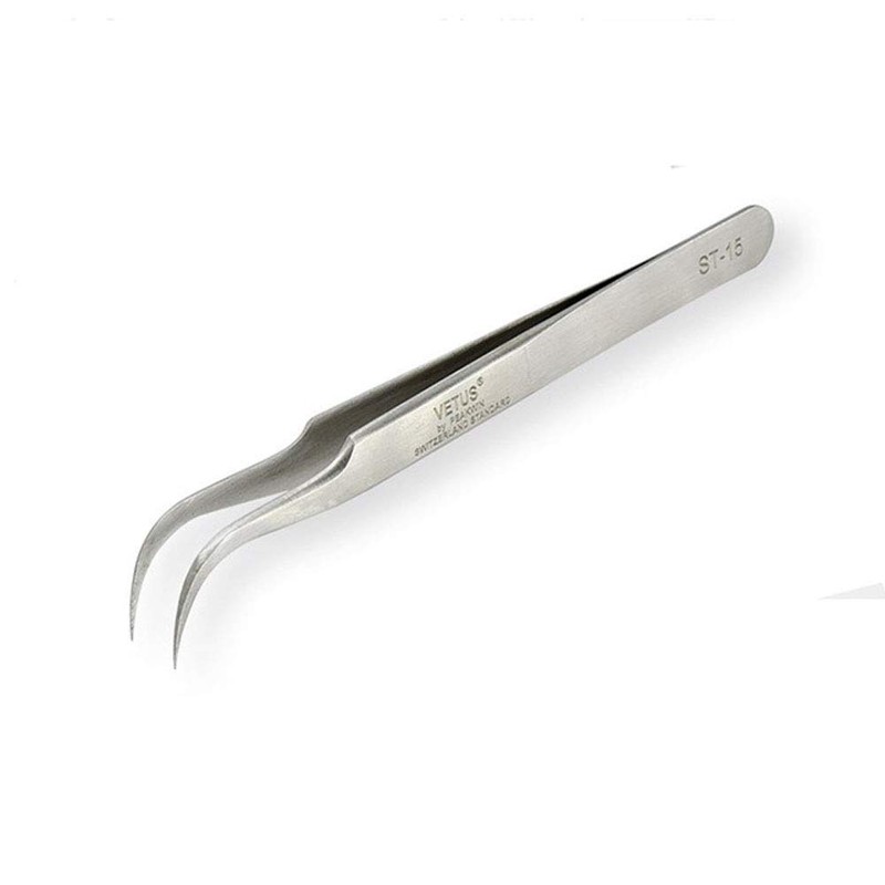 Vetus® Precision Eyelash Extension Tweezers - Professional Tweezers with Straight and Angled, Curved, Pointed Volume for 3D 4D 6D Eyelash Extension - ST-15 (120 mm, Curved)