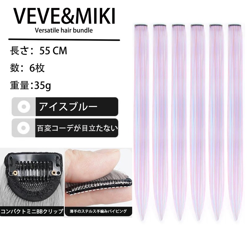 VEVE&MIKI エクステ ワンタッチ メッシュ 6本セット 単色・人工毛・55CM ウィッグ インナー ワンタッチ ストレート ロング つけ毛 発表会 パーティー ファッション 30色