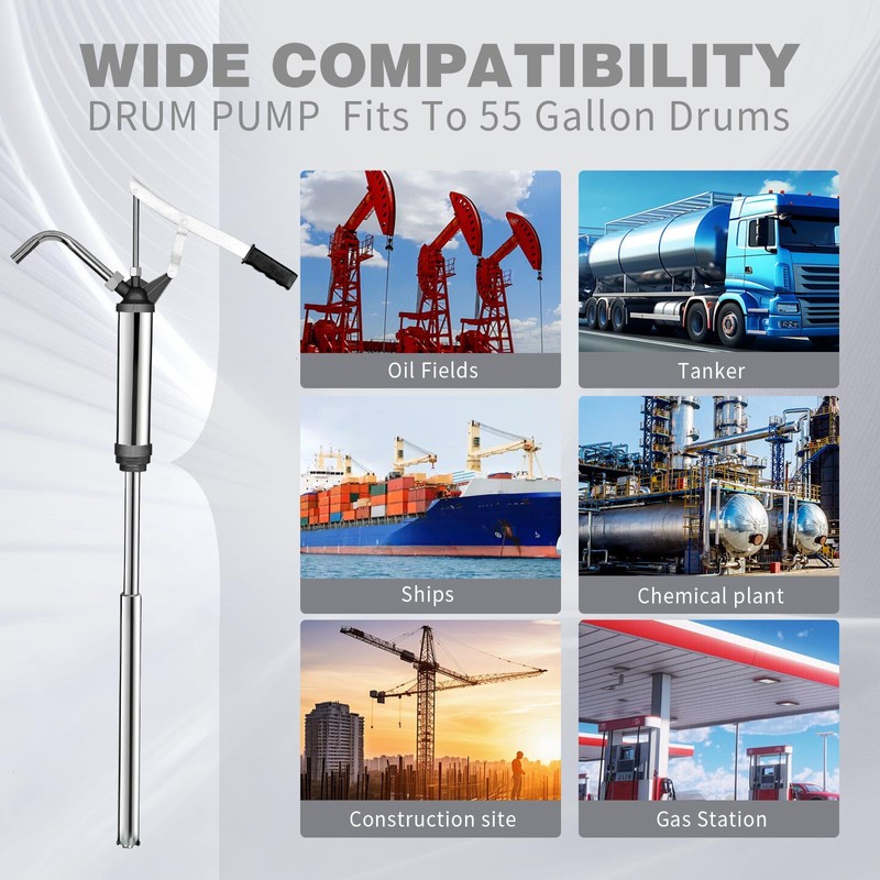 - 【Vevitts 55 Gallon Drum Pump】Our lever action barrel pump comes with a pump head and a telescoping tube.Effortlessly operates, catering to drums ranging from 5 to 55 gallons, meeting diverse specifications. Suitable for various sizes of oil drums.
