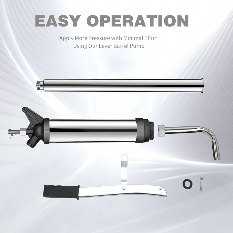 - 【Easy to Use】This lever type barrel pump is a smart tool to dispense gear oil, and other non-corrosive liquids from barrel quickly and easily. With self-adjustable suction tube, it is convenient for flexible dispensing, and you can use the removable nozzle to fit hoses simply. In addition, the cushioned grip is a humanized design of non-slip pumping. Such a practical and handy pump, don't miss it!
