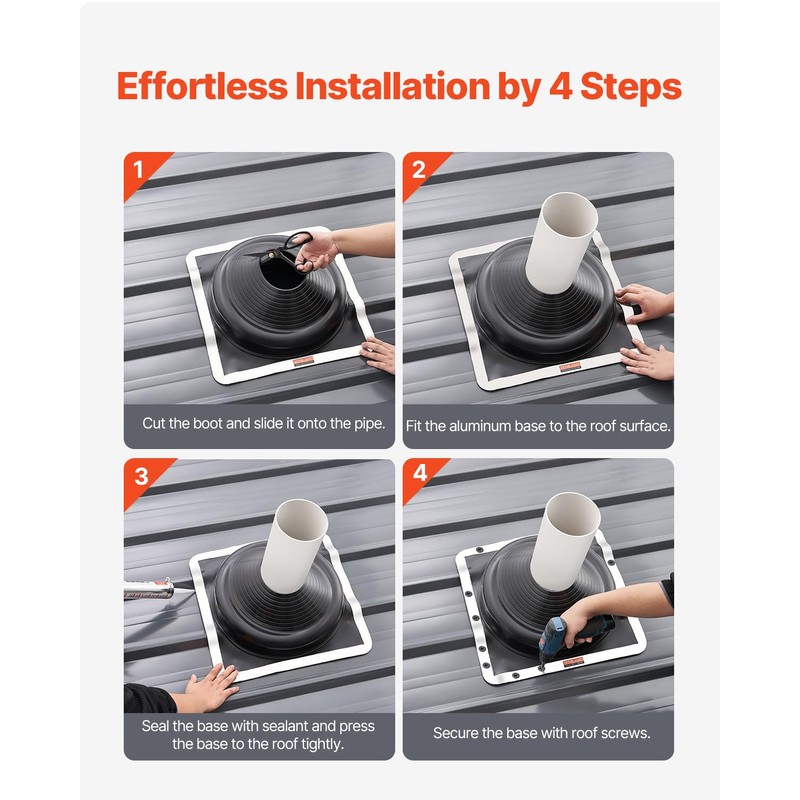 - Effortless Installation, Practical Leak Protection: Simply trim the boot to the required size, seal the base with sealant, and secure the waterproof base with screws. The high temp roof boot will then provide reliable, long-lasting protection for your roofing and vent pipes, ensuring a secure, leak-proof seal.