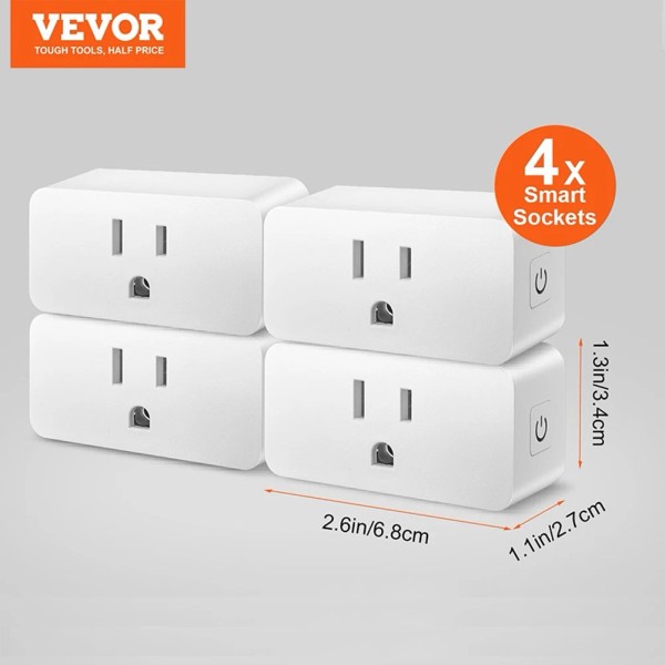 VEVOR 4 Pack Smart Wi-Fi Outlet Plug with Voice Control ,Remote & Scheduled
