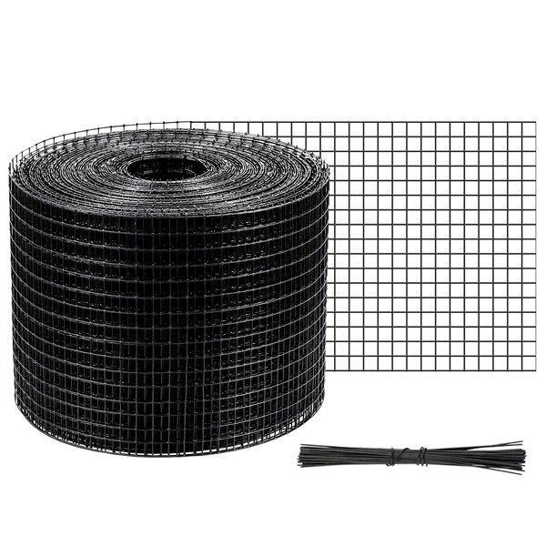 VEVOR 8inch x 98ft Critter Guard for Solar Panels, PVC Coated Wire Mesh Roll Kit with 50pcs Ties for Pigeon Deterrent, Bird, Squirrel Proof, Black