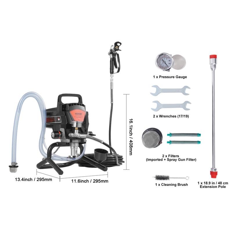 VEVOR 950W Stand Airless Paint Sprayer, 3000PSI High Efficiency Electric Airless Sprayer, Handheld Paint Sprayers for Home Interior and Exterior Furniture and Fences, Fine And Even Painting Effect:_Portable 750W 3000PSI