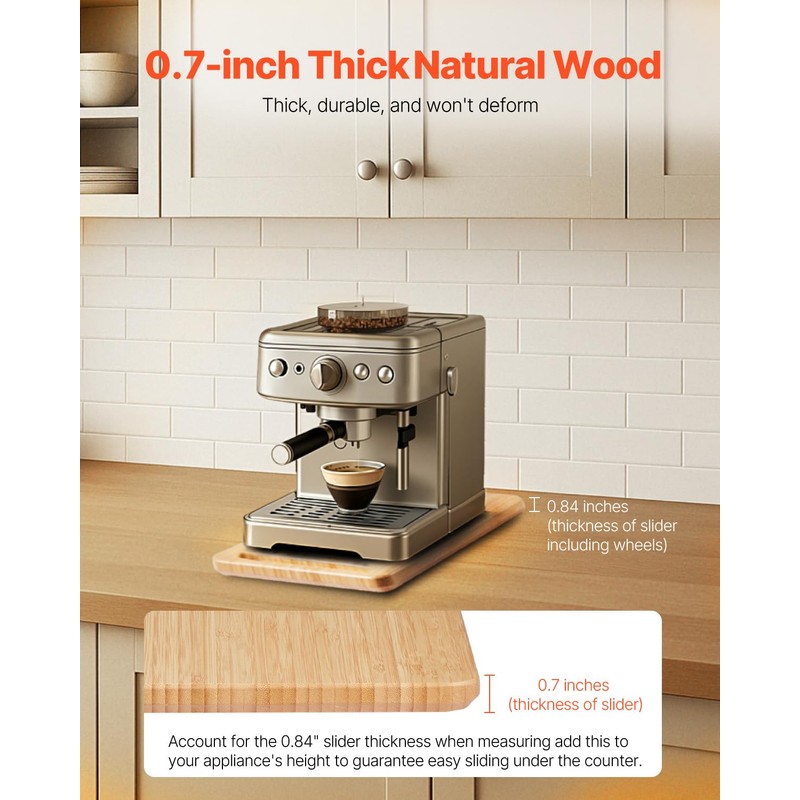 - Natural Material: The sliding tray is made from natural material, free from odors, with a 0.7-inch thick design that's durable and resistant to warping or cracking. Built for frequent kitchen appliance adjustments.