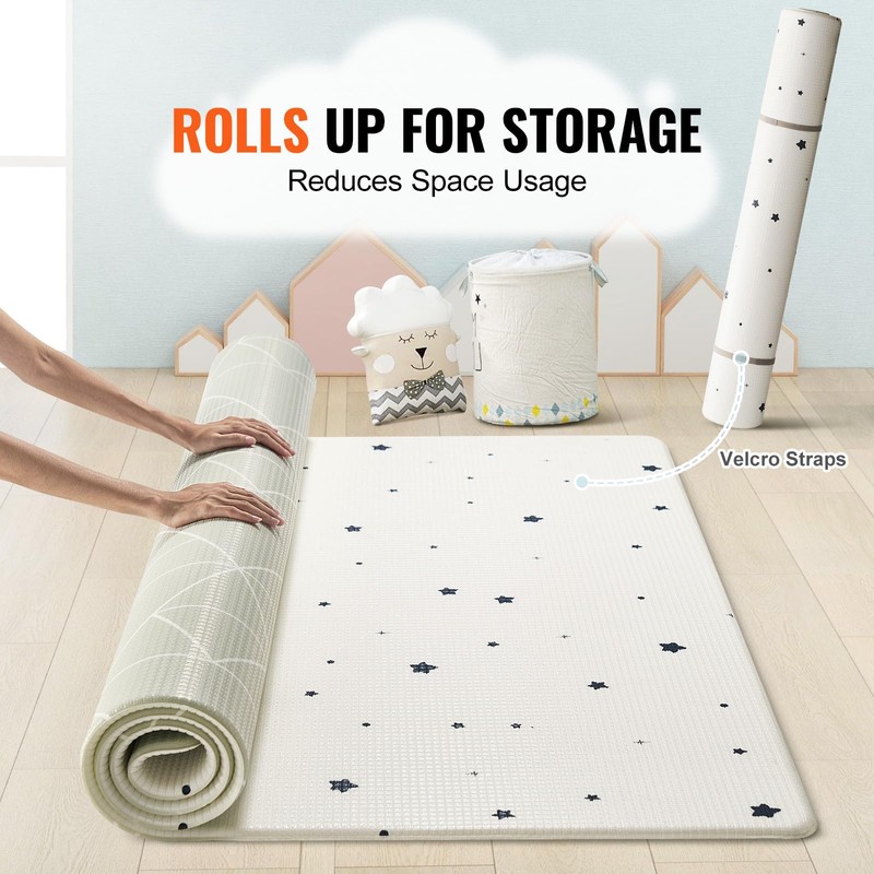 - Easy to Store: When not in use, you can easily roll up the anti-slip crawling mat activity playmat and secure it with the included velcro straps, then tuck it into corners, under the bed, or in the closet to save space.