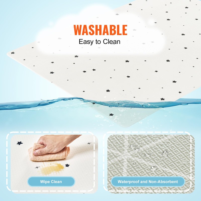 - Dual-Sided Anti-Slip Design: The waterproof activity playmat is reversible, with both sides featuring anti-slip textures to prevent the mat from slipping or your baby from falling on it. The simple star and line patterns provide gentle visual stimulation for your baby.