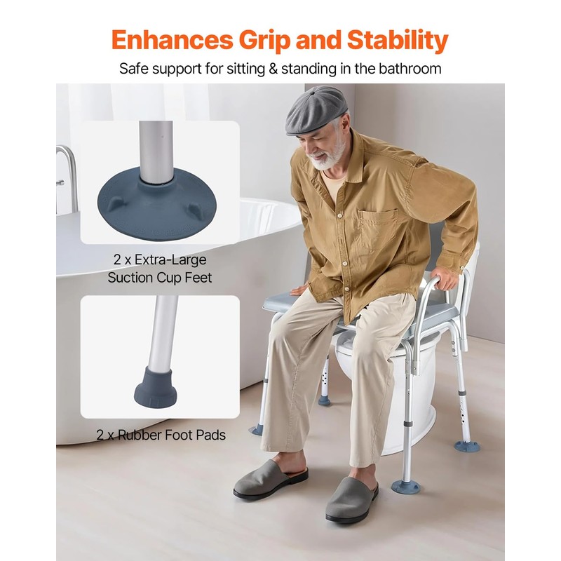 - Stable & Non-Slip Design: With two large non-slip suction feet and two non-slip rubber feet, this adult potty chair stays firmly in wet bathrooms. It's ideal for elderly users, post-surgery recovery, pregnant women, or anyone with limited mobility