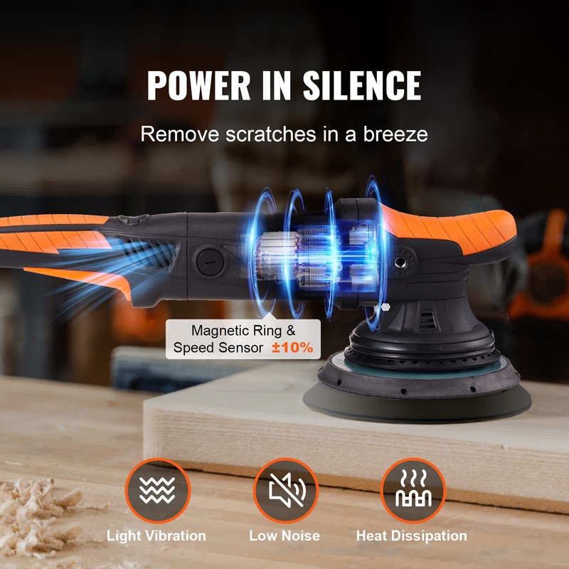 • Speed is On Your Side: Take control of your car polisher with the 6-level speed control! With 1900-4600RPM rotary speed, you have the flexibility to adjust the buffing machine according to your needs. Whether it's the low speed for a gentle waxing and buffing, medium speed for thorough polishing and cleaning, or high speed for removing stubborn paint defects and oxidation, this orbital polisher has you covered.