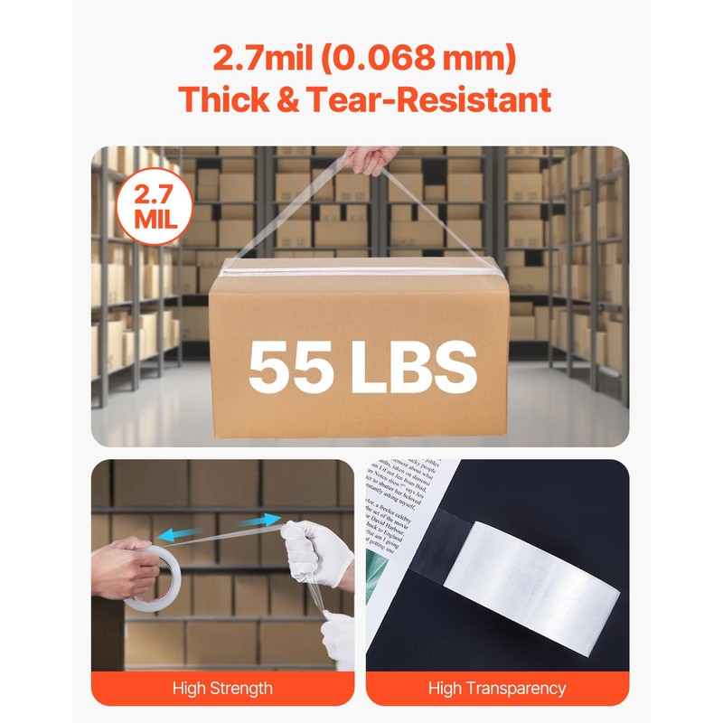 - Durable & Tough: Constructed from strong BOPP material with a 2.7mil (0.068mm) thickness, this clear packing tape provides excellent strength and durability, resisting tears and splits.