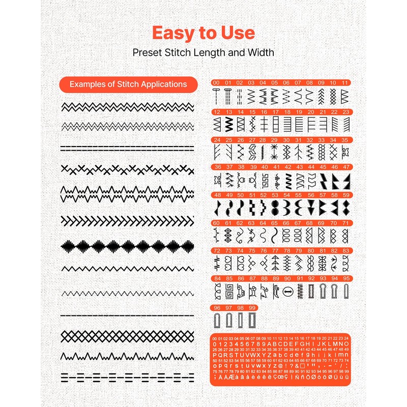 - Simple Operation: Preset needle position, stitch length, and width save setup time. Adjustable thread tension and built-in automatic needle threader simplify operation. This sewing machine is ideal for beginners and efficiency-focused users