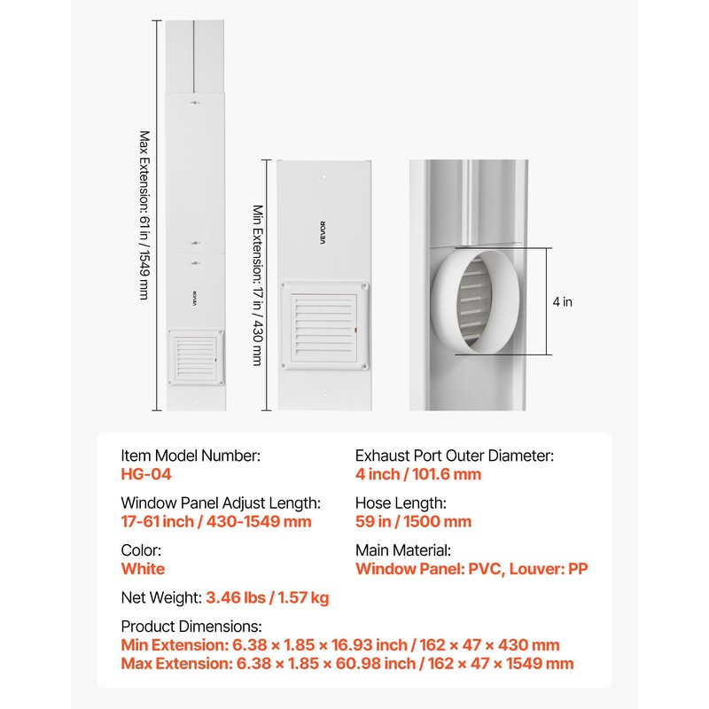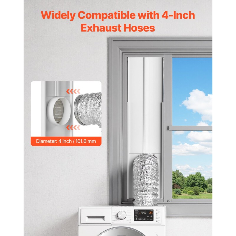 VEVOR Dryer Vent Window Kit, Fits 4-Inch Exhaust Hoses, Adjustable Length for Adapts Sliding Windows of Different Heights, Sturdy PVC and PP Materials, Dual Protections & Multi-layer Sealing Design